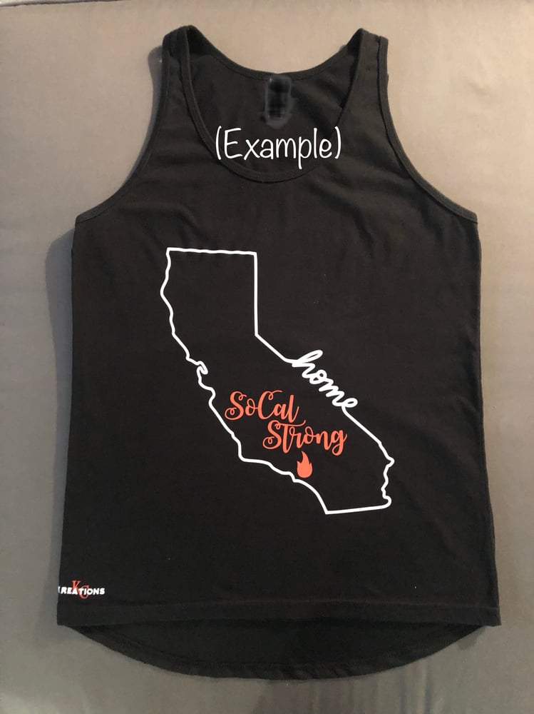 100% of tank top proceeds will go directly to my dad and family who lost their home on 11/09/18 in the Woolsey Fire. Shirts are made as orders are placed and will be shipped out as soon as possible!
